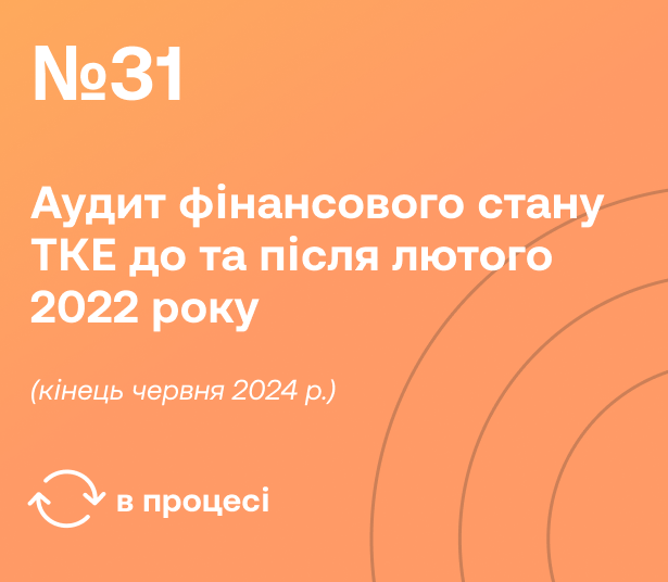 Необхідно визначити обсяг заборгованості та оцінити фінансовий стан компаній централізованого теплопостачання за допомогою кабінетної перевірки авторитетною аудиторською фірмою, зокрема шляхом відокремлення заборгованості до та після лютого 2022 року.